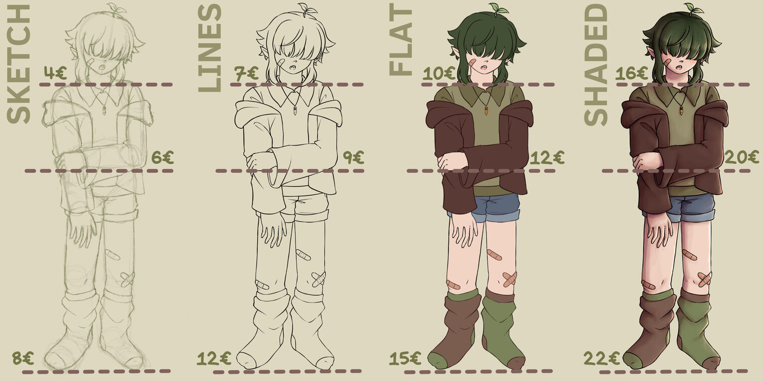 OCs, fanart, real people, mild gore, extra people (+50% per character)